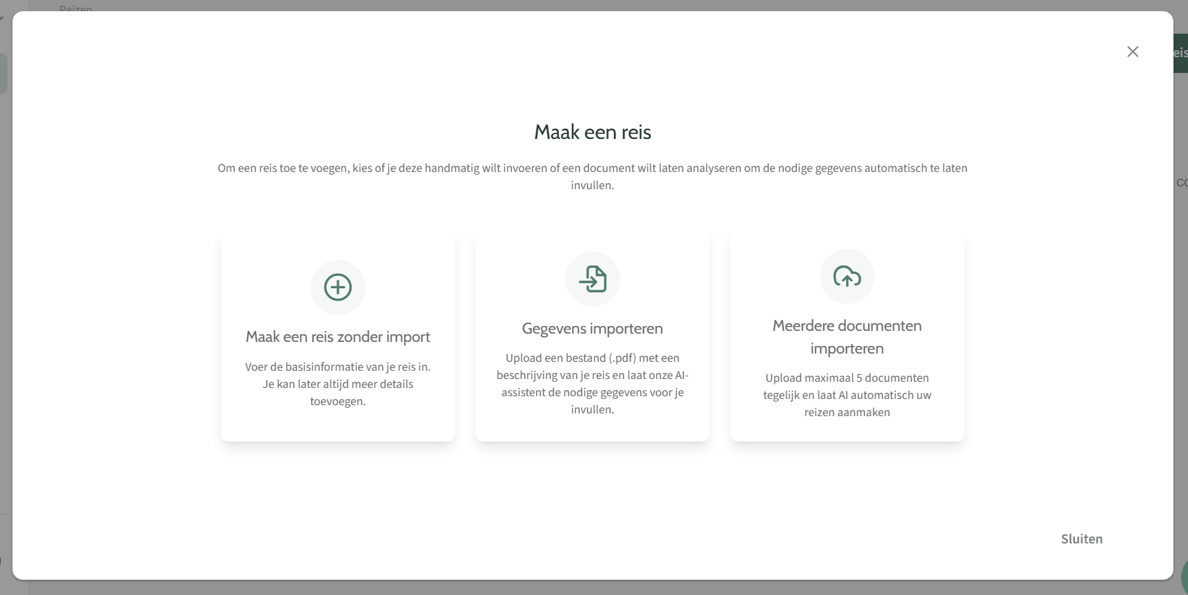 Hoe werkt het? Een AI-module scant eerst het bestand en herkent alle onderdelen van de reis die een CO₂e-voetafdruk hebben. Vervolgens stuurt de AI de gegevens naar onze calculator, die een gedetailleerde grafische analyse van elke reis genereert. Zo kun je reizen vergelijken, actiepunten identificeren en rapporten exporteren met een overzicht van alle geregistreerde reizen.